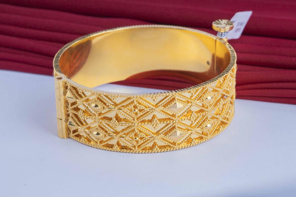 اسوارة بنجل تصميم بحريني شغل الليزر عيار 21 الوزن 38.36 جم