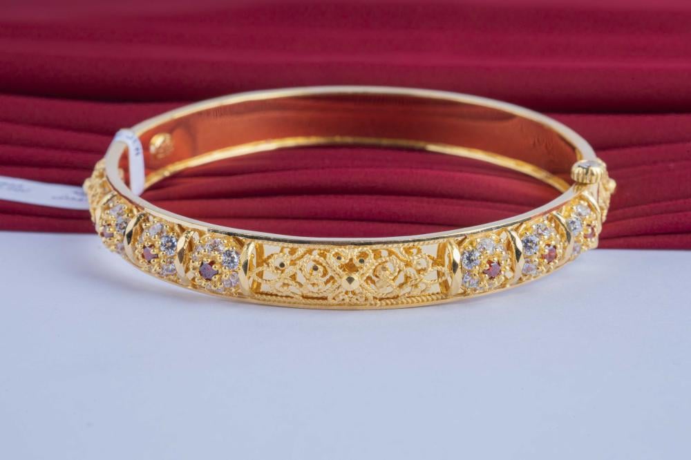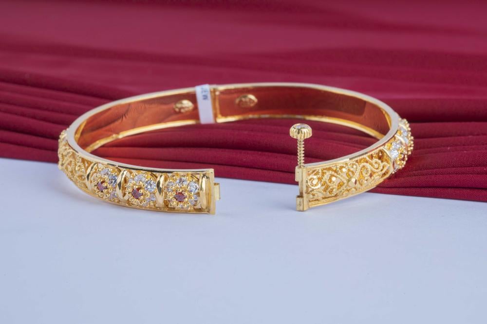 اسوارة بنجل تصميم بحريني مع فص ابيض وعنابي عيار 21 الوزن 20.81 جم