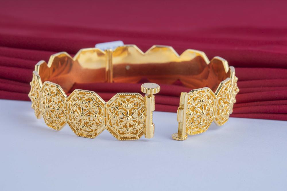 اسوارة ذهب بنجل تصميم بحريني شغل ليزر عيار 21 الوزن 22.46 جم