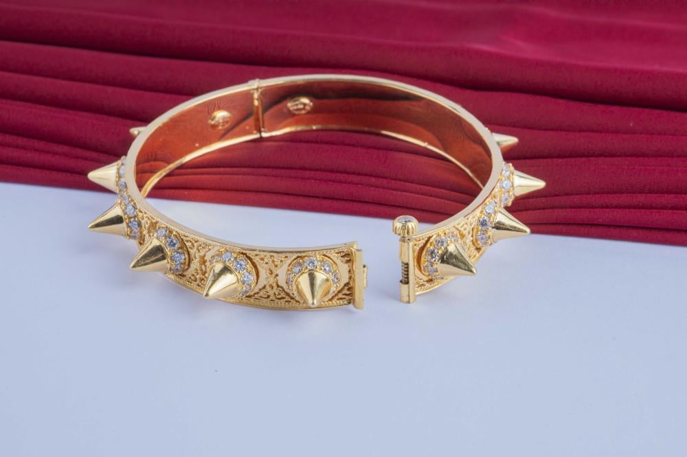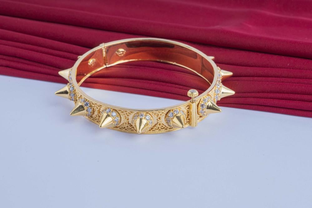 اسوارة ذهب بنجل تصميم بحريني مع الفص الأبيض عيار 21 الوزن 27.96 جم