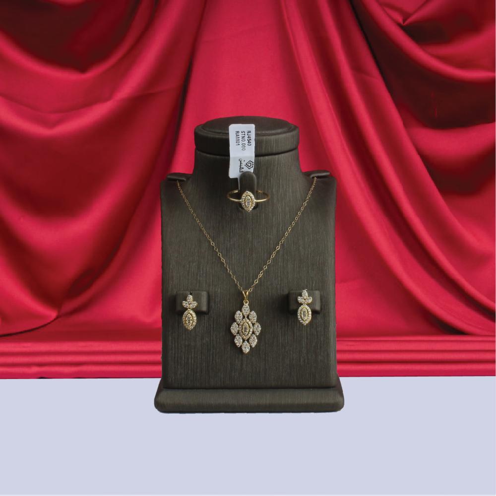 - المكونات: طقم كامل (قلادة، أقراط، خاتم – حسب التوفر)
