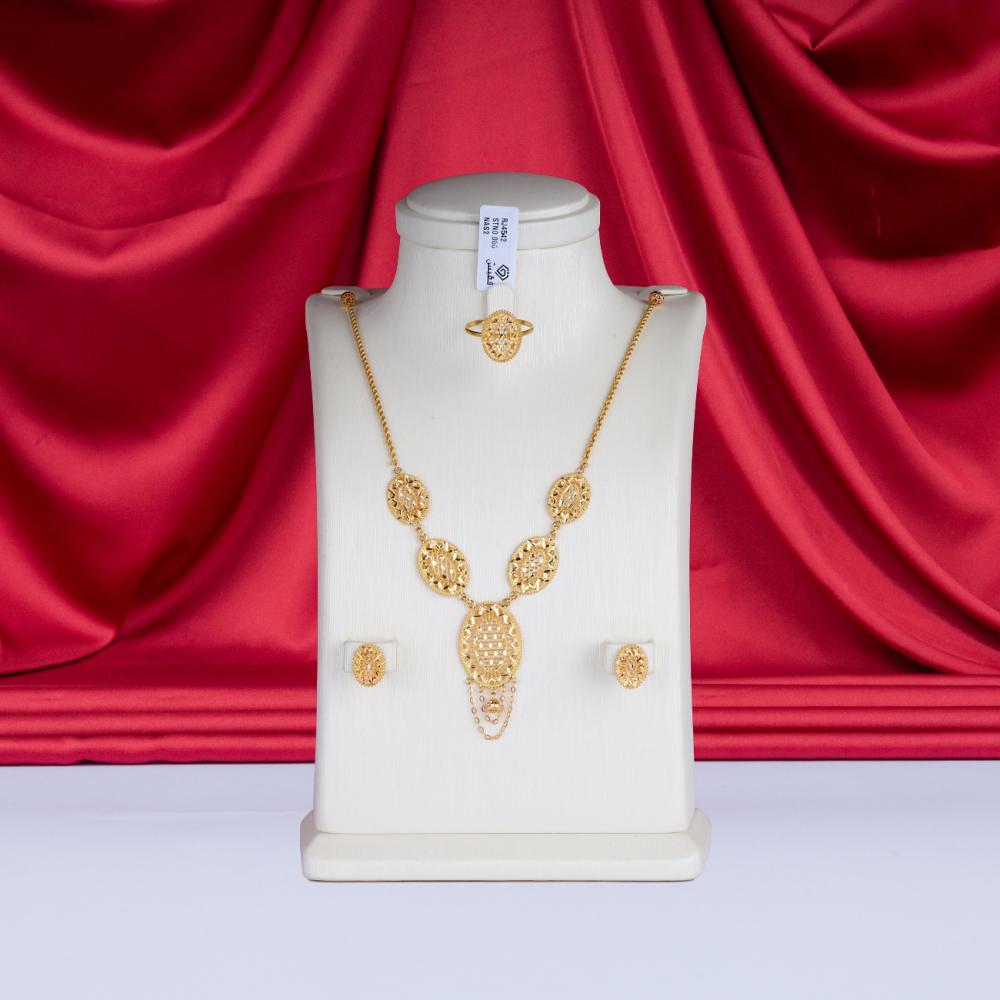- عدد القطع: طقم متناسق (قد يشمل عقد صغير، حلق، وسوار أو خاتم – حسب التشكيلة المتوفرة)