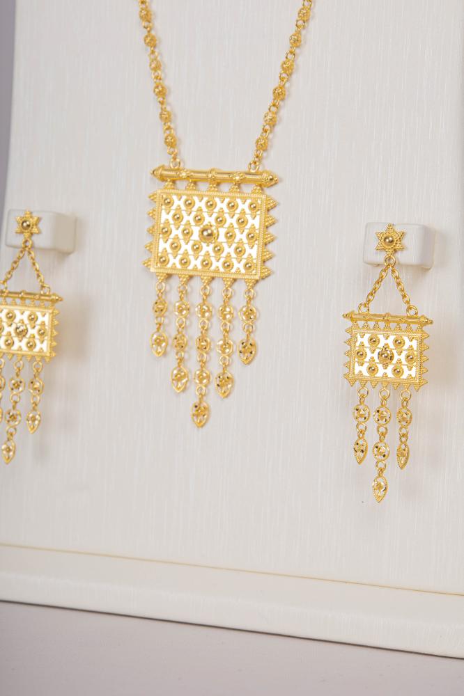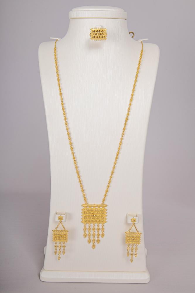 طقم ذهب تصميم بحريني عيار 21 الوزن 27.7 جم