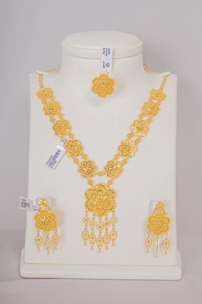 طقم ذهب تصميم بحريني عيار 21 الوزن 63.44 جم