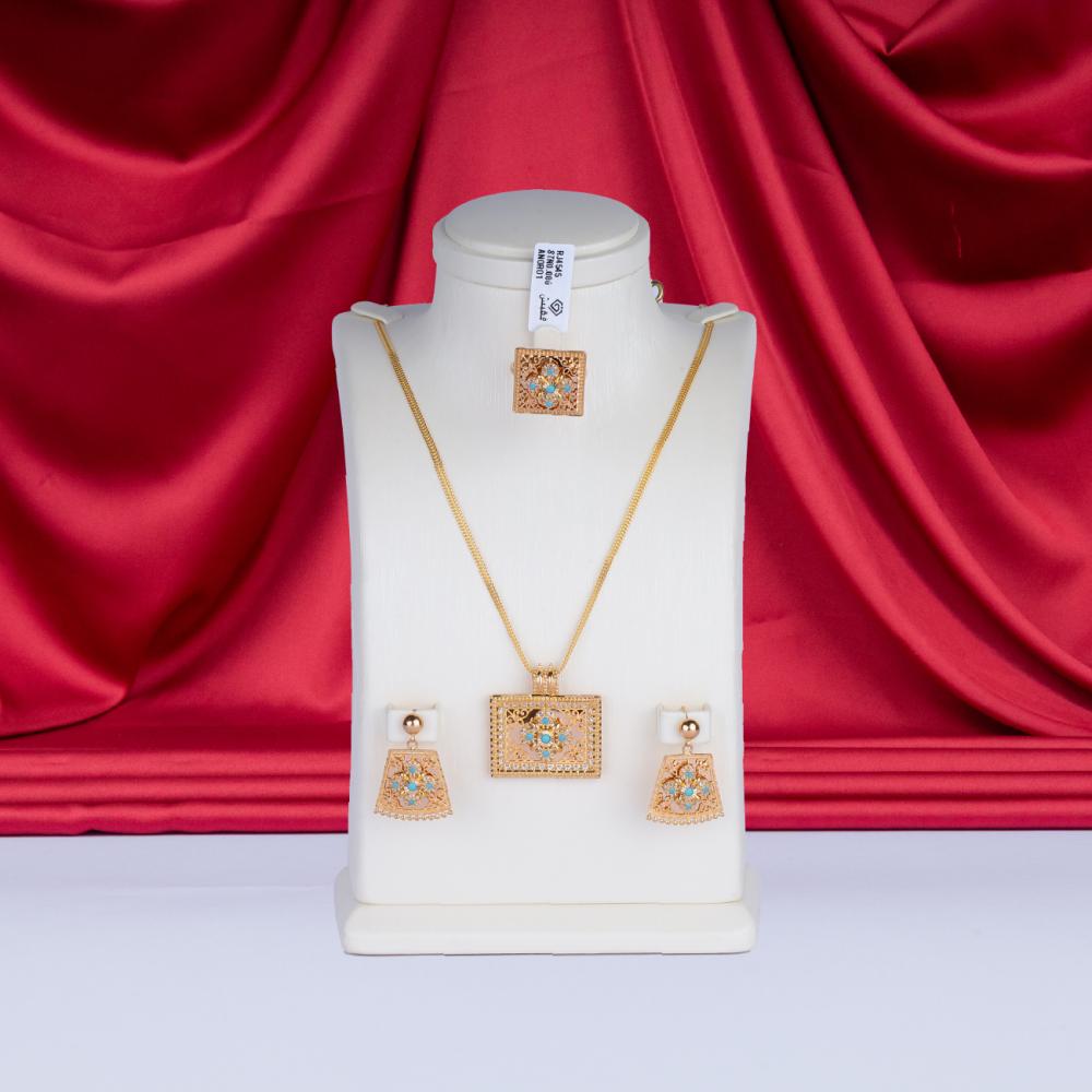 ارتقي بإطلالتك مع لمسة من الفخامة والجمال مع هذا الطقم الذهبي الراقي، المصنوع من ذهب أصفر عيار 21 بوزن 19.09 جرام، والذي يتميز بتصميمه المتقن وشغله المميز الذي يبرز الأناقة بكل تفاصيله. تصميم يجمع بين البساطة الراقية والتفاصيل الفنية الدقيقة، ليمنحك قطعة مثالية لكل المناسبات الرفيعة، ويعكس ذوقك الرفيع وشخصيتك المتألقة.