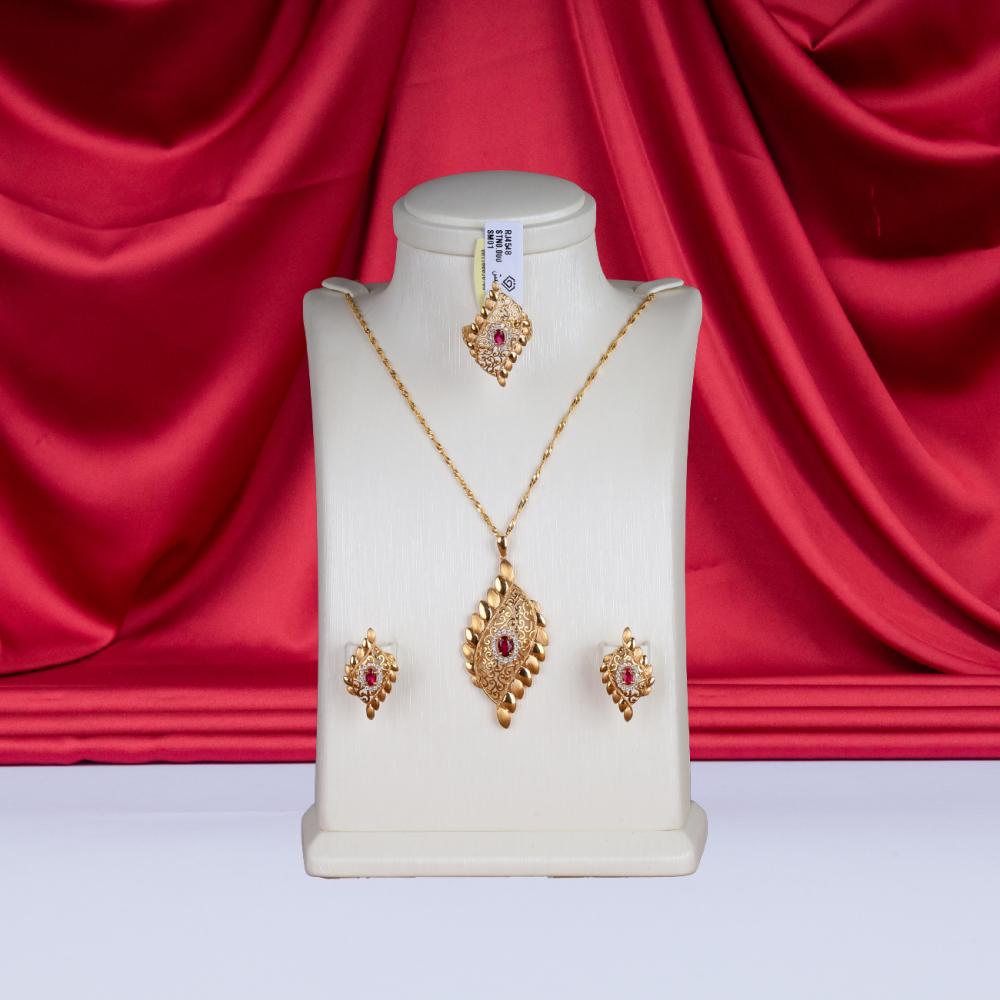 اختاري الفخامة والجمال مع الطقم الذهبي المميز من ذهب عيار 21 بوزن 19.09 جرام، المصمم بعناية فائقة ليمنحكِ إطلالة أنيقة ومتميزة في كل مناسبة. يأتي هذا الطقم بتصميم عصري وفاخر يعكس الحرفية العالية والتفاصيل الدقيقة التي تميز تصاميم متجر مجوهرات فقيش. بفضل جودته العالية وتصميمه المميز، يعد هذا الطقم الخيار المثالي للمناسبات الرفيعة، مثل الأعراس والمناسبات الخاصة.