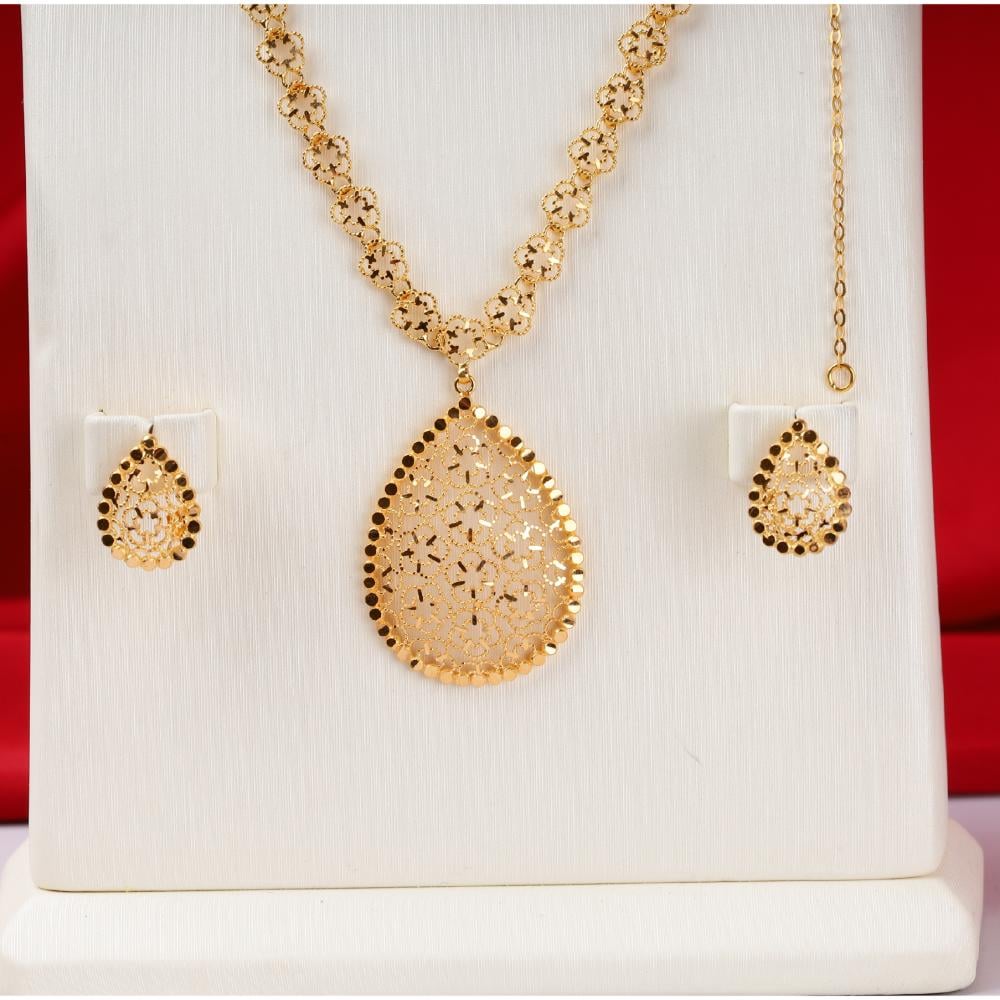 اسم المنتج: طقم ذهب عيار 21 – تصميم بحريني | الوزن: 14.94 جرام