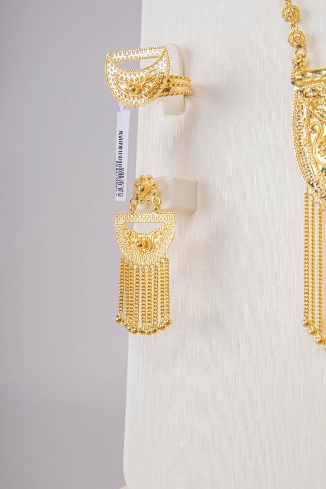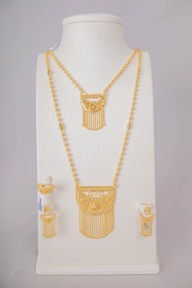 طقم ذهب مع خناقي تصميم بحريني عيار 21 الوزن 62.71 جم