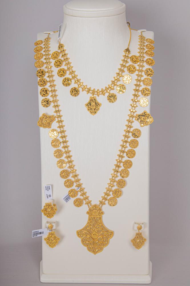 طقم سيتمي مع الخناقي ذهب تصميم بحريني عيار 21 الوزن 132.73 جم