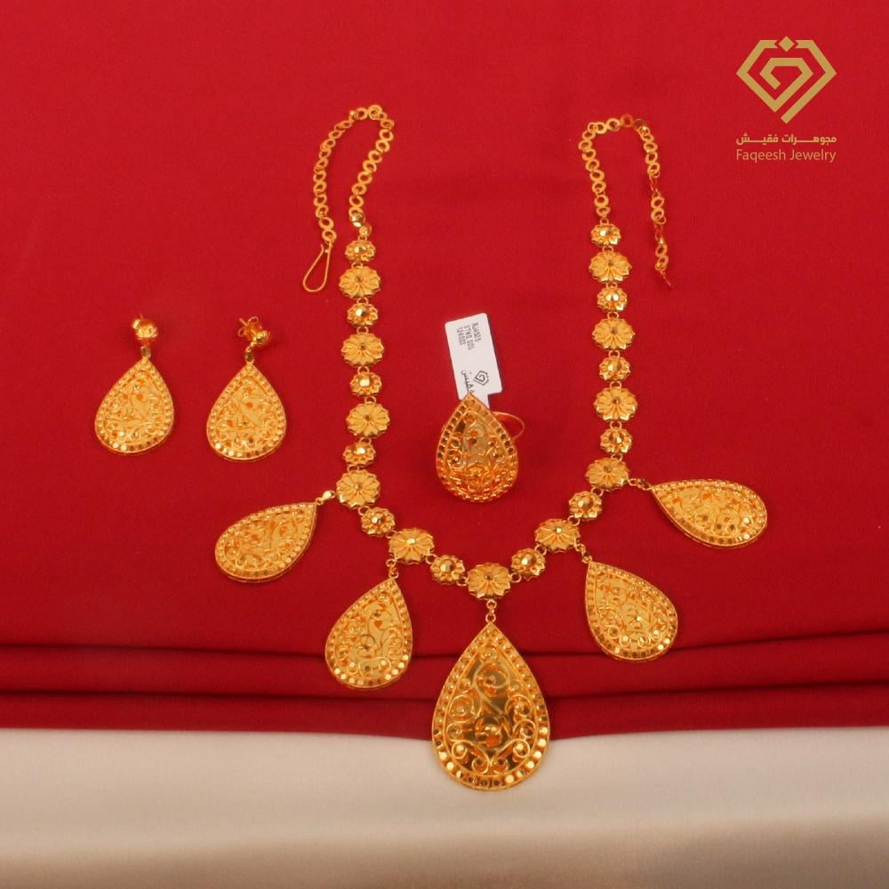 تألّقي بفخامة الذهب الأصيلة مع طقم العقد عيار 21 من مجوهرات فقيش ✨